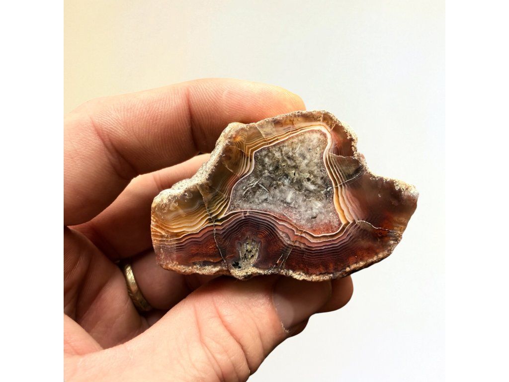 Tenhle achát pochází z Podkrkonoší a byl ručně vyleštěn v naší dílně, aby vynikla jeho přirozená kresba – bez zbytečných zásahů, jen tak, aby kámen mohl ukázat, co v sobě má.