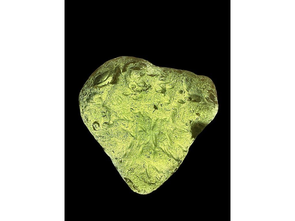 Vltavín je jedinečný geologický produkt dopadu – typ tektitu, tedy přírodního skla vzniklého extrémními podmínkami srážky s kosmickým tělesem (nejde o běžný krystal jako například křemen). Typické jsou jeho zelené až olivové odstíny, které při prosvícení světlem doslova září. Charakteristická je také jeho nepravidelná textura, tzv. skulptace.